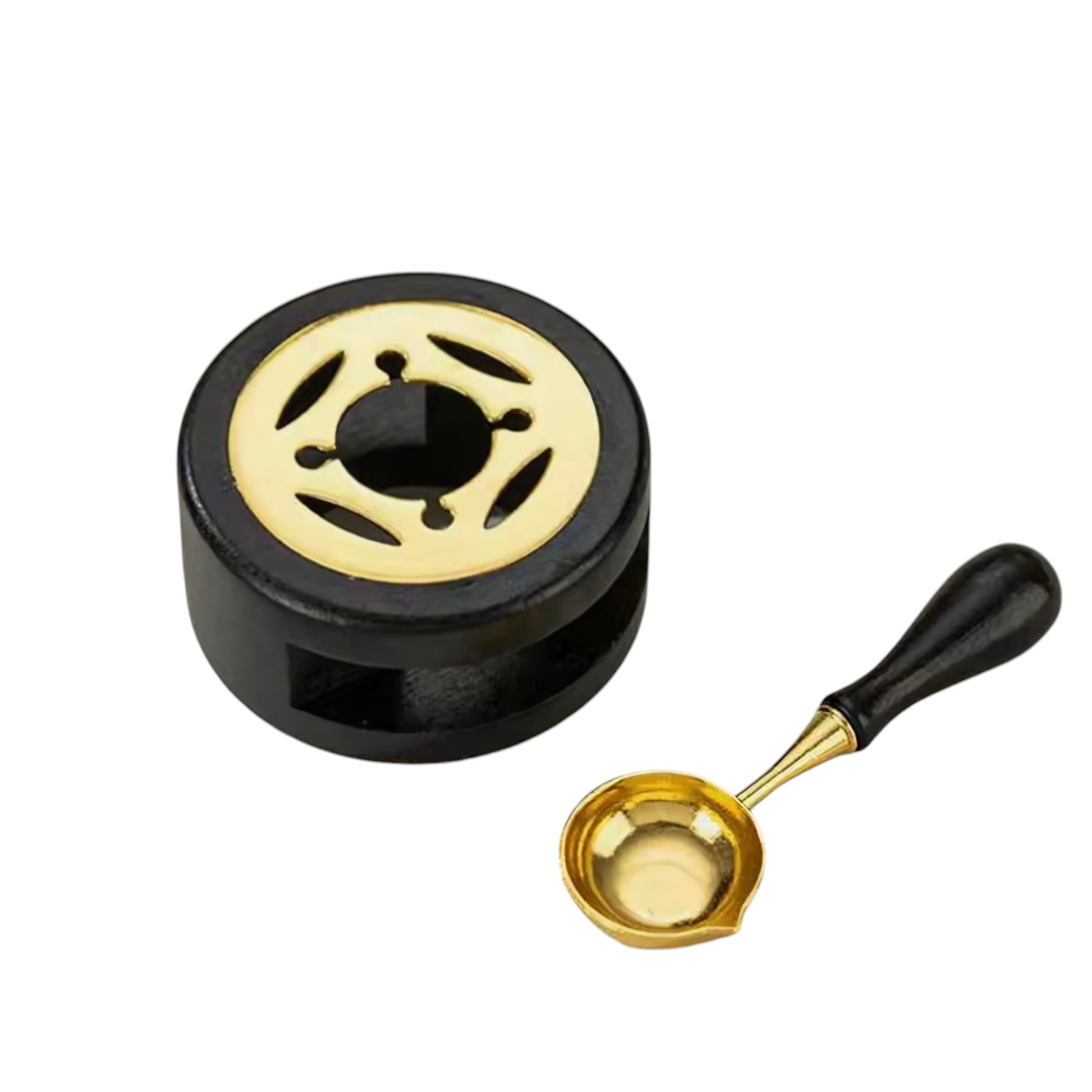 Η βάση είναι ξύλινη και το κουταλάκι μεταλλικό.